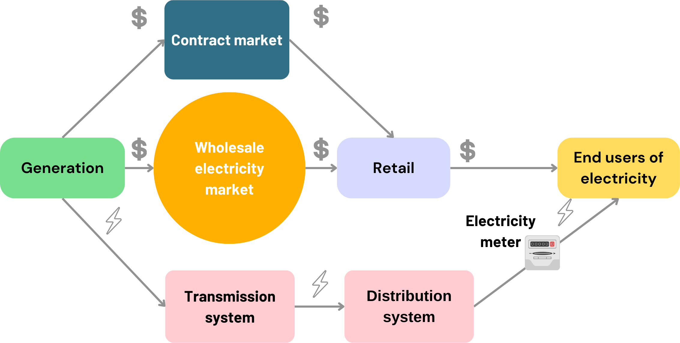 Since these mechanisms are complex, and quite obscure to the average electricity user, there also exists a retail market. Retailers participate in the rapidly moving wholesale market, but on-sell electricity to individuals at a steady, promised price. In other words, they hedge against future electricity prices on behalf of individual customers.
